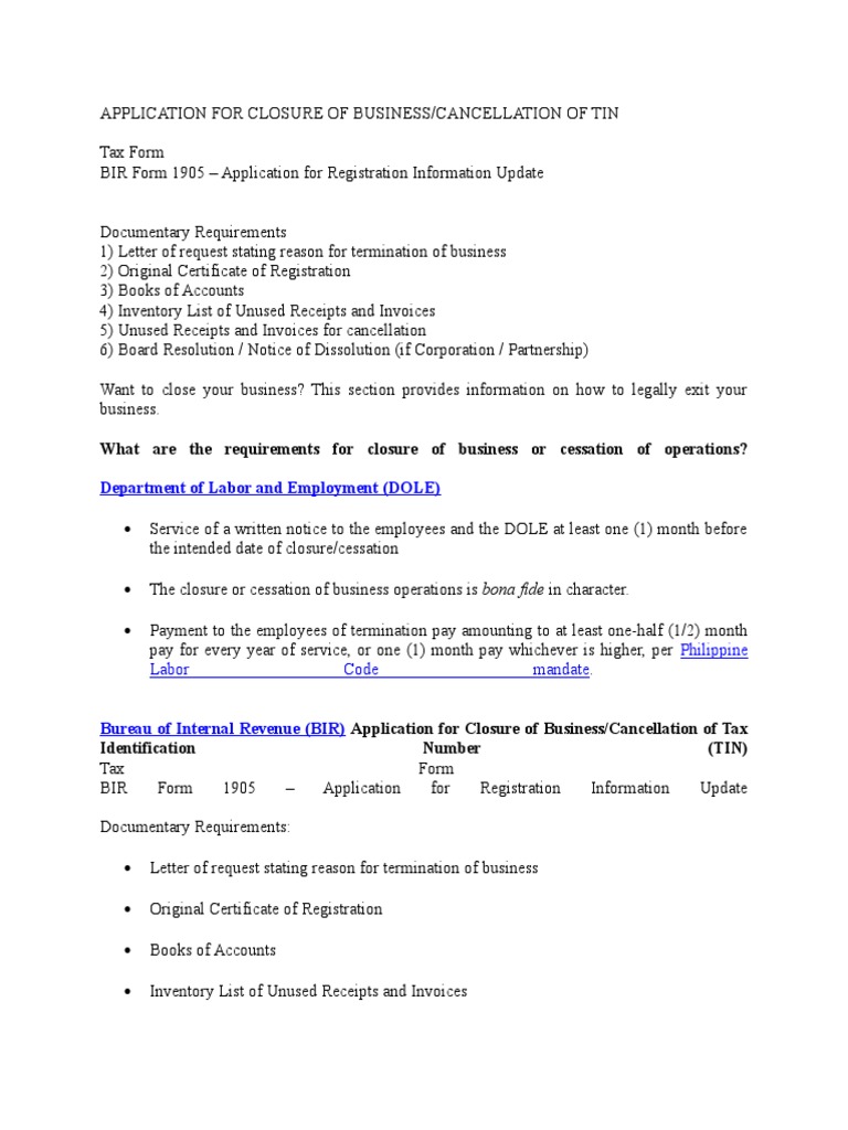 Affidavit Of Closure Of Business Bir from imgv2-1-f.scribdassets.com I would like to request for the cessation of the business registration because my business is no longer existing. The sender's name, door number and street's name, area name, city. Sample letter of closing business. Learn how to write that perfect cover letter here's a sample speculative cover letter you can file along with your application. If you are composing a letter that requesting bir for the closure of your business due to bankruptcy,then you have to tell them about the documents that need to surrender. Letter of request for retirement/closure of business. (please click on any of the below letters to. Letters & emails business letters.